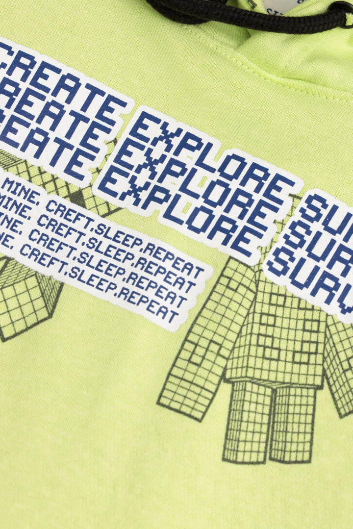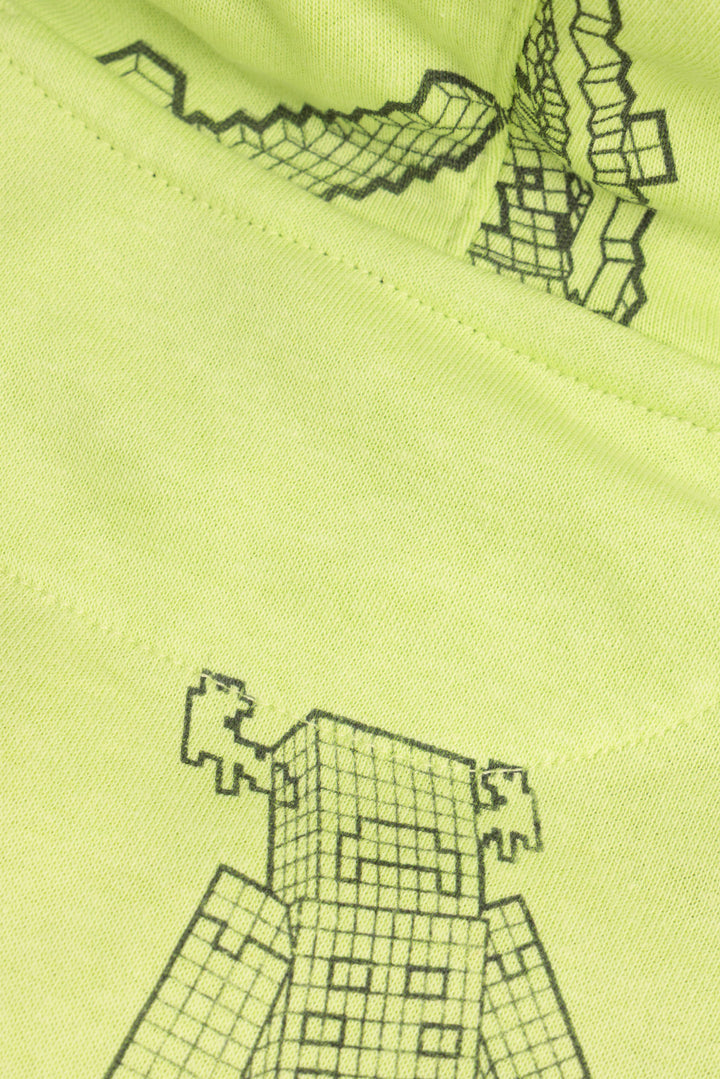 - Pattern: All-over Block/Pixel Gaming Graphic Print (e.g., creepers, tools, and text prompts like "CREATE EXPLORE SURVIVE").