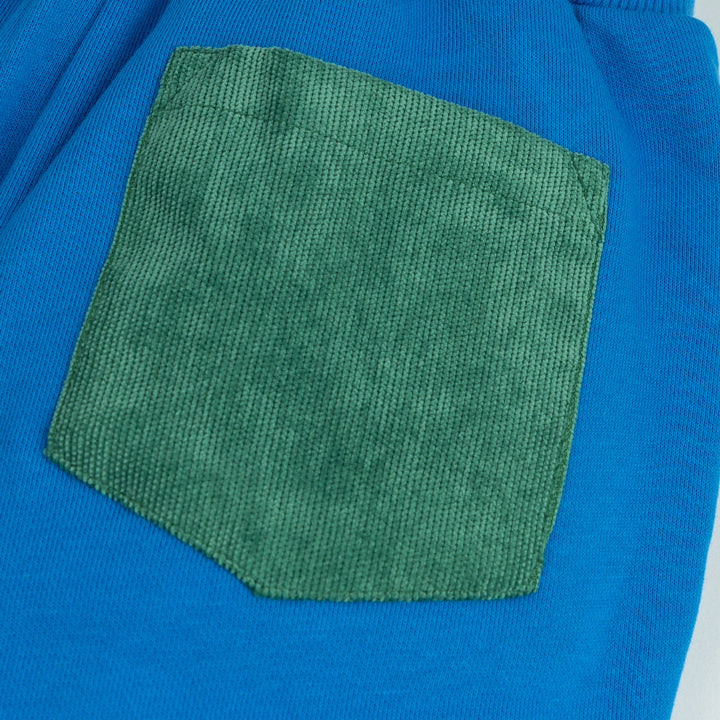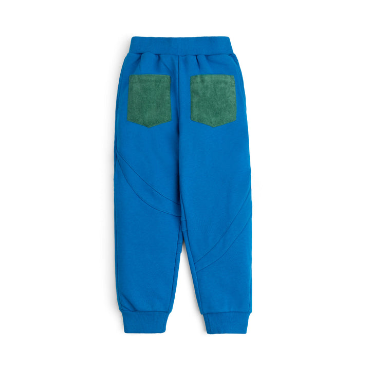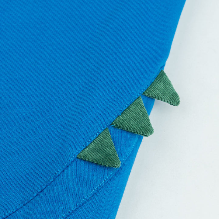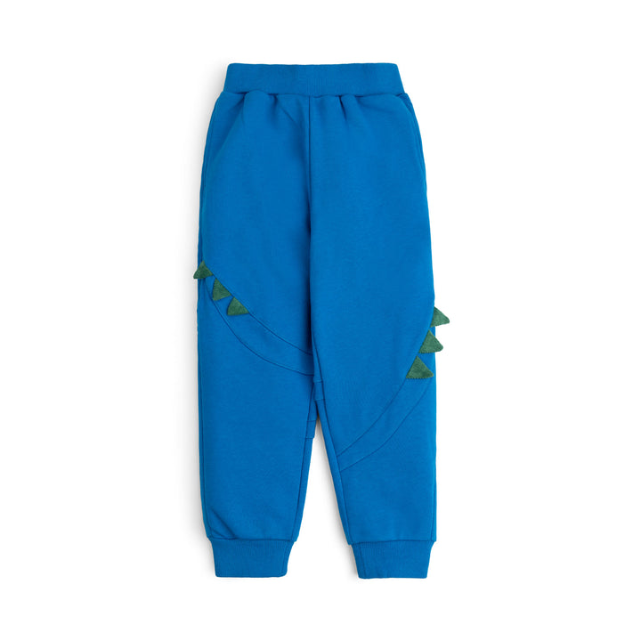 These joggers are made for prehistoric playtime! This fun and unique piece features a playful dinosaur-inspired design, showcasing subtle green felt 'spikes' or triangles sewn onto the outer knee panels. Crafted from thick, warm fleece fabric in a bold Royal Blue, these trousers provide exceptional comfort and insulation for all-day adventures.