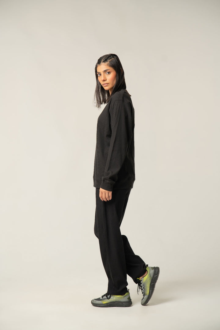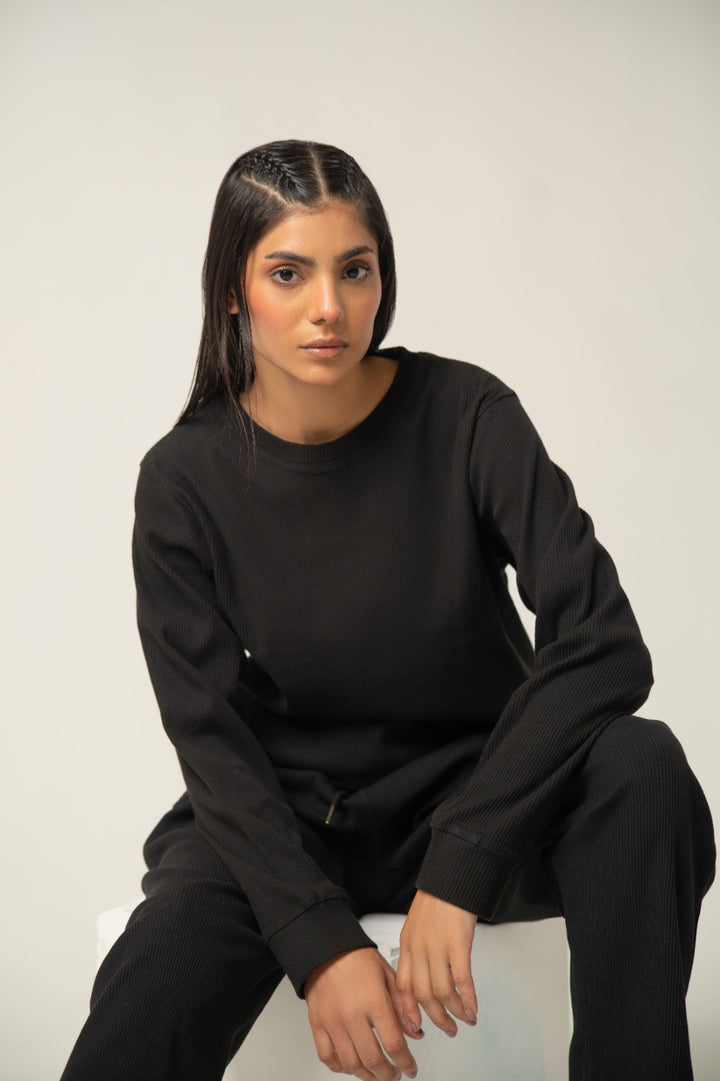 This Black ribbed co-ord set embodies refined elegance with its carefully curated design. The luxurious ribbed fabric creates subtle texture and dimension, while the coordinated two-piece silhouette offers effortless sophistication. The warm yellow tone provides a timeless appeal that complements diverse skin tones and personal aesthetics.