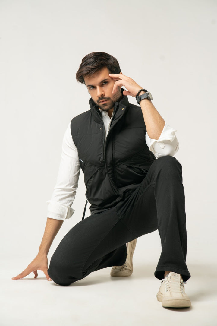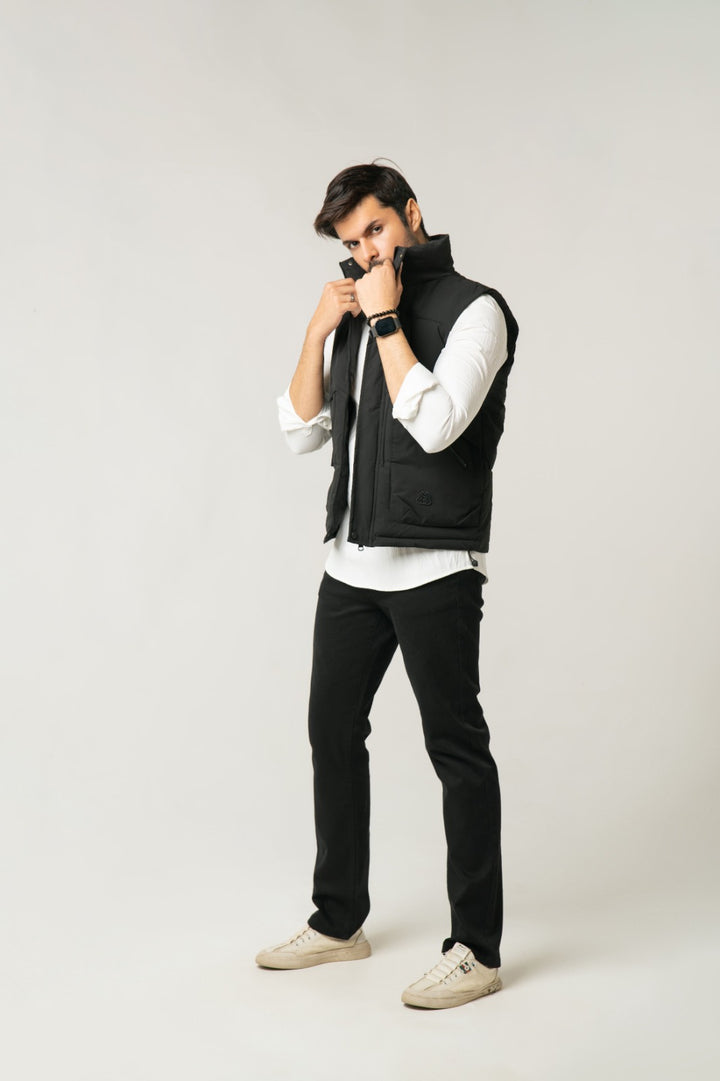 Face the elements with style and function in this ruggedly designed Utility Puffer Jacket. It features a modern, structured silhouette with a high neck and full zip-up front for superior warmth and protection. The jacket includes multiple functional pockets, distinct angular and vertical stitching, and a clean, durable exterior. This piece is the ideal blend of practical outerwear and contemporary street style, perfect for cold-weather layering.