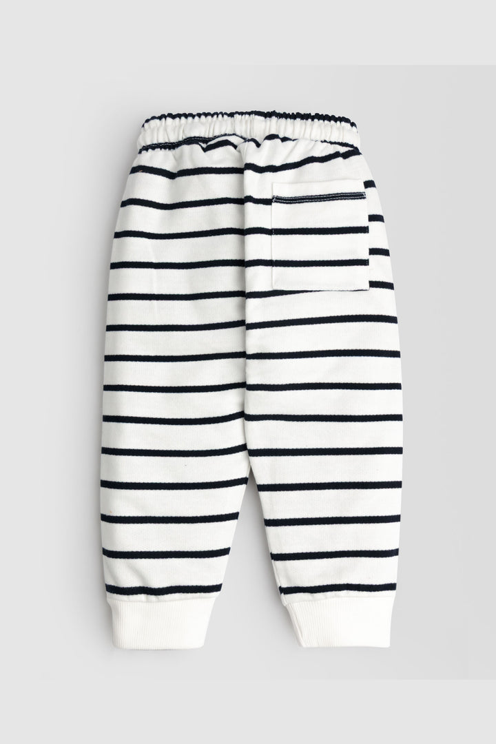 Stylish and comfy boysβ jogger trouser with navy stripes, contrast side piping, and adjustable drawstring for a perfect fit. Ideal for everyday wear.