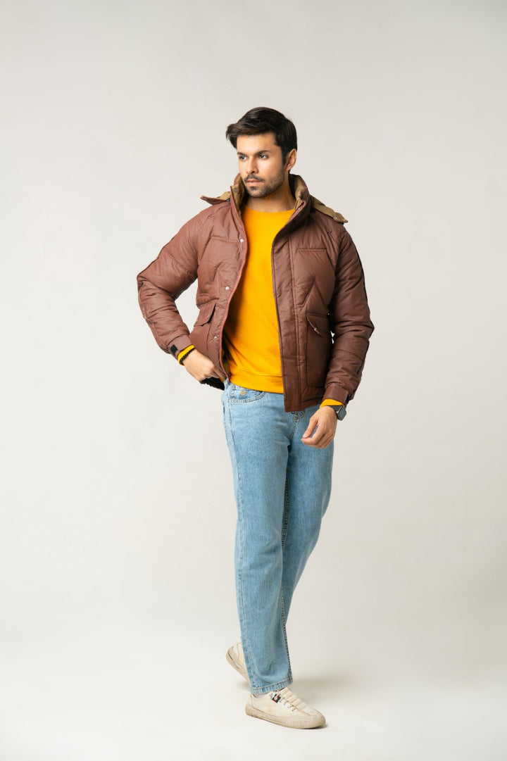 Stay warm and sharp this season with Brave’s quilted puffer jacket. Designed for everyday versatility, it features a high-neck collar, contrast inner hood, and functional flap pockets. Lightweight insulation keeps you cozy without bulk — perfect for layering through chilly days in style.