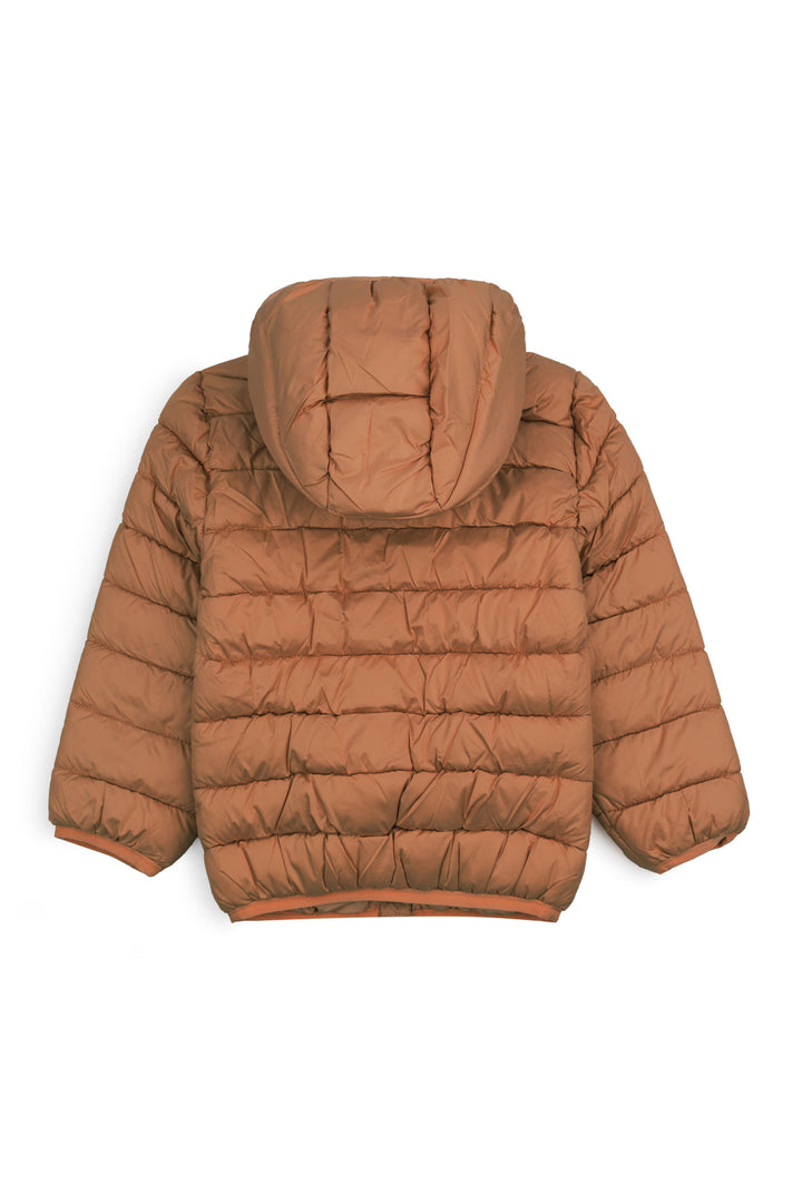 This puffer jacket with an attached hood is the perfect no-bulk layer for chilly days. Features durable quilted insulation, a full-zip front, and two side pockets. An essential jacket for school, play, and layering comfort.