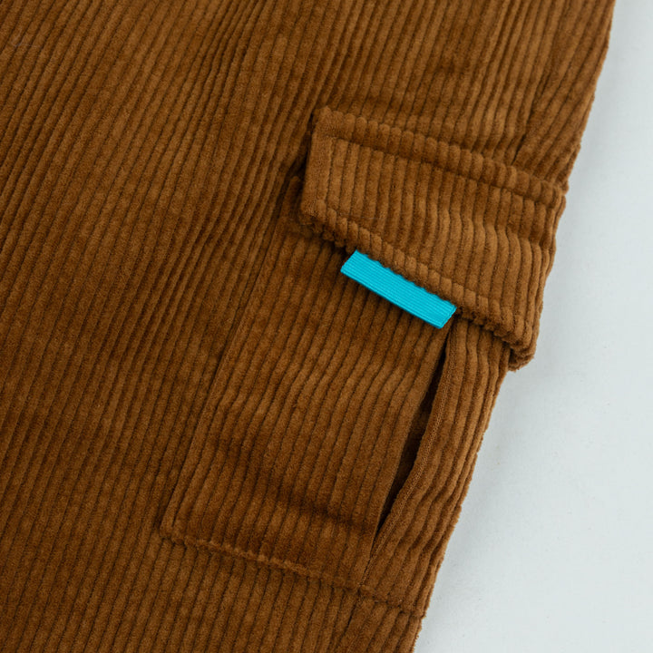 Crafted from a rich, thick corduroy fabric, they offer a classic ribbed texture that adds warmth and vintage style. The deep Classic Brown color is versatile and easy to style. What sets these apart are the spacious cargo pockets on the legs, finished with a bright blue textile detail for a pop of modern color.