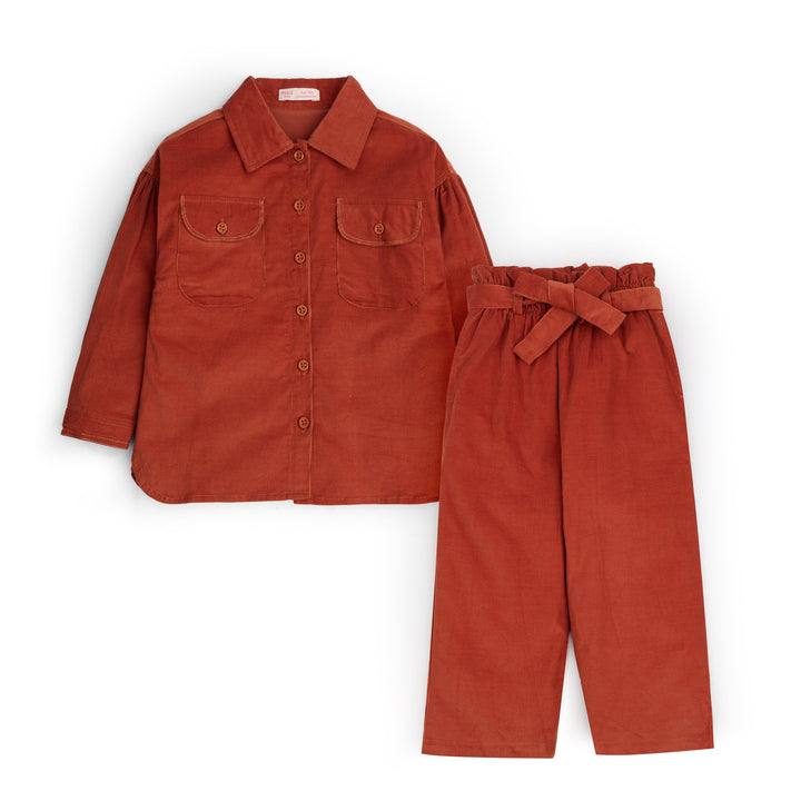 This trendy Girls' Corduroy Co-ord Set offers effortless style and warmth in one package. Crafted from soft, cozy fine-wale corduroy fabric in a rich Burnt Orange/Rust color, this set provides a sophisticated yet playful texture.