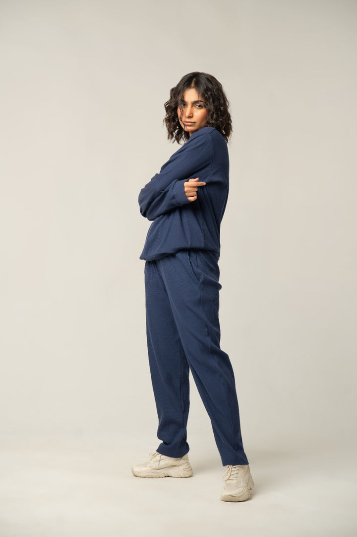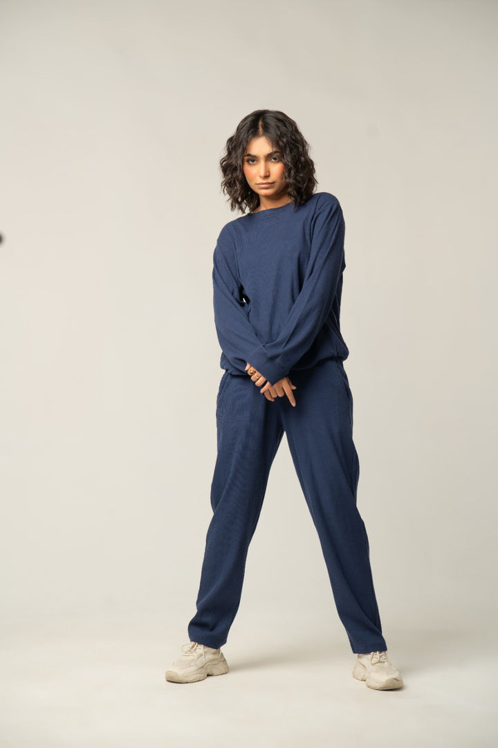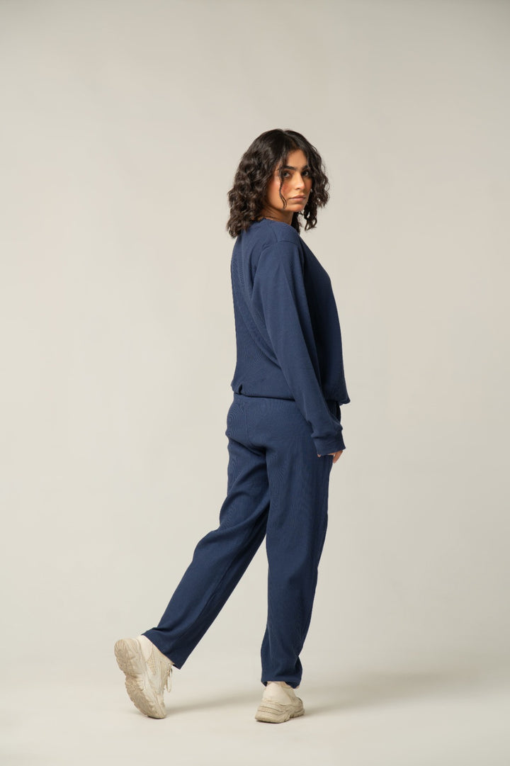 This Navy ribbed co-ord set embodies refined elegance with its carefully curated design. The luxurious ribbed fabric creates subtle texture and dimension, while the coordinated two-piece silhouette offers effortless sophistication. The warm yellow tone provides a timeless appeal that complements diverse skin tones and personal aesthetics.