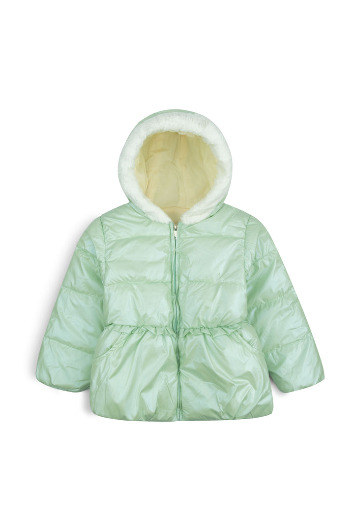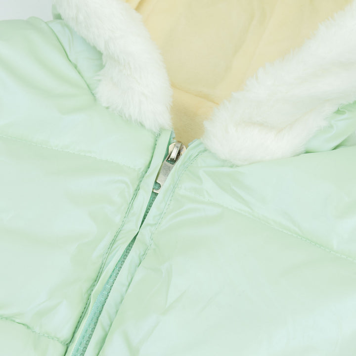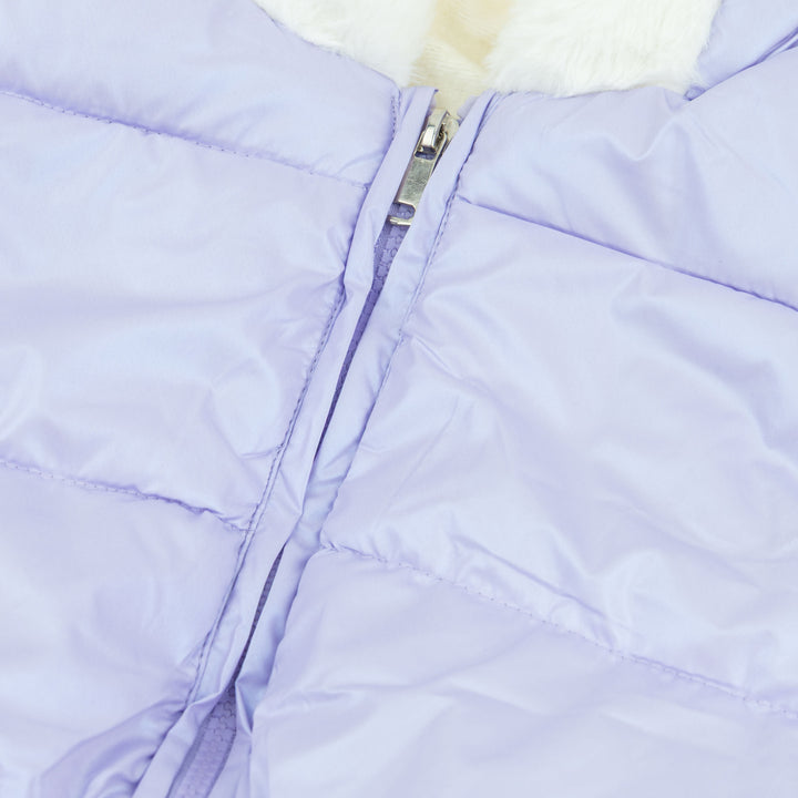 Keep her cozy in style! This adorable lavender puffer jacket features a soft faux fur-lined hood and a lightweight, insulated design for warmth without bulk. Perfect for everyday adventures.