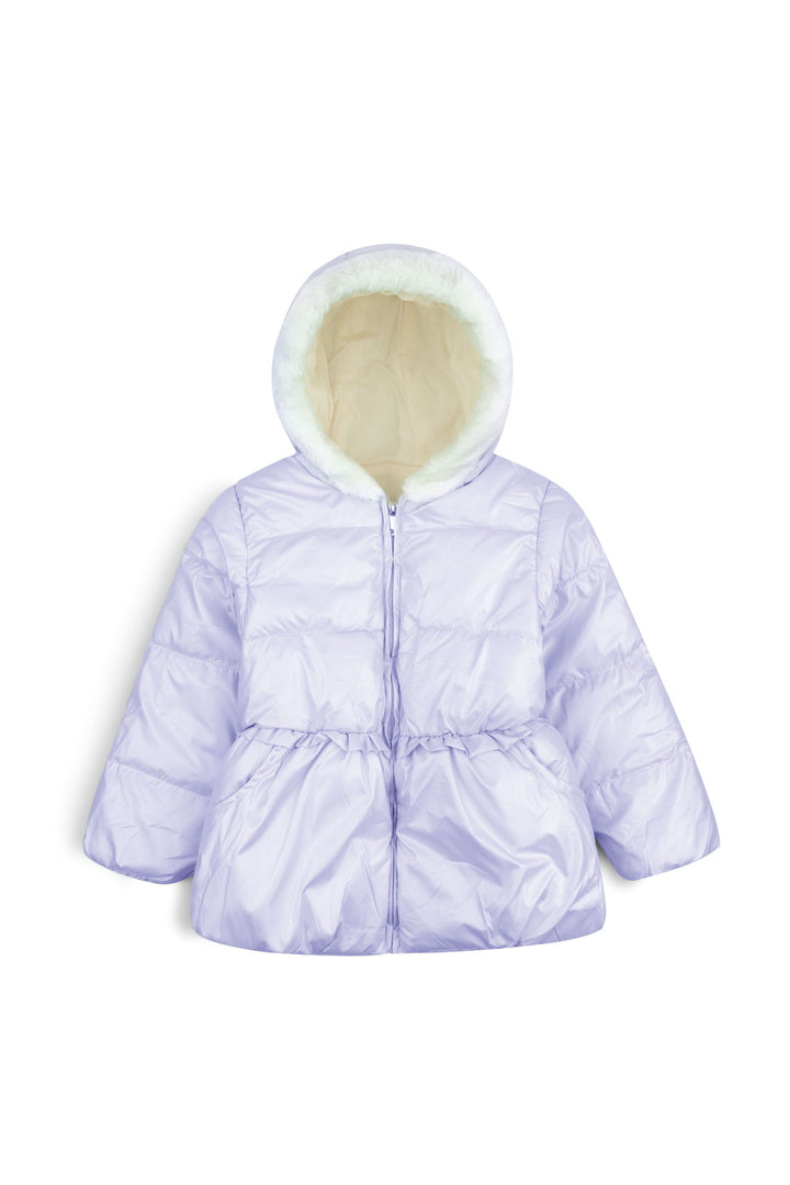 Keep her cozy in style! This adorable lavender puffer jacket features a soft faux fur-lined hood and a lightweight, insulated design for warmth without bulk. Perfect for everyday adventures. Features Color:...