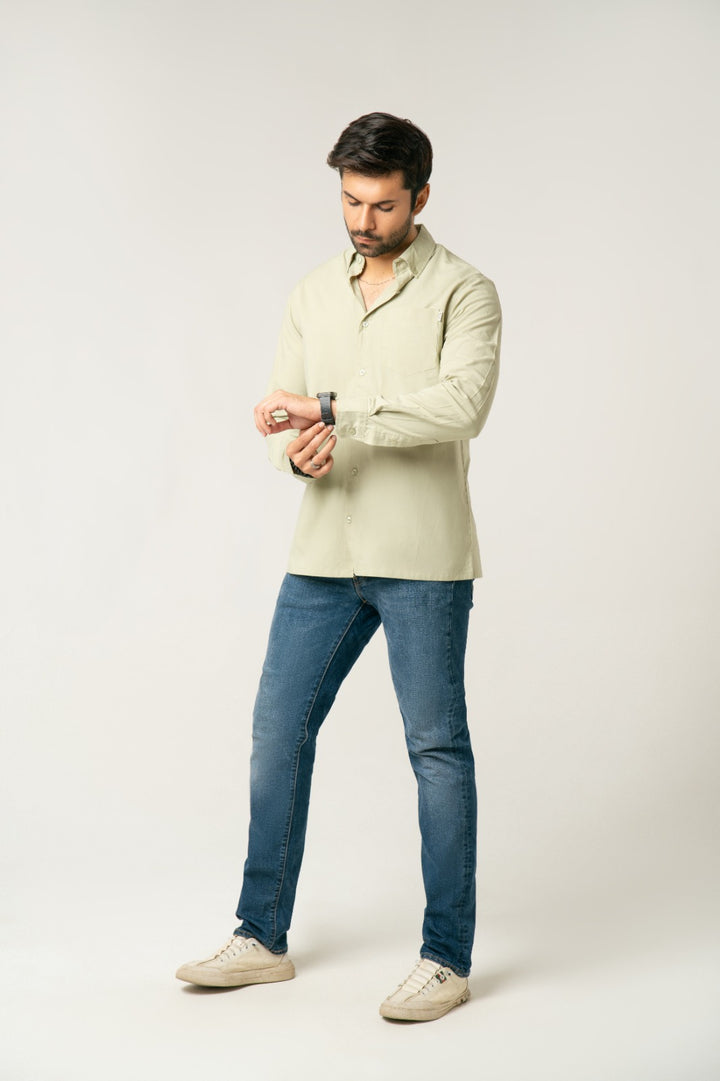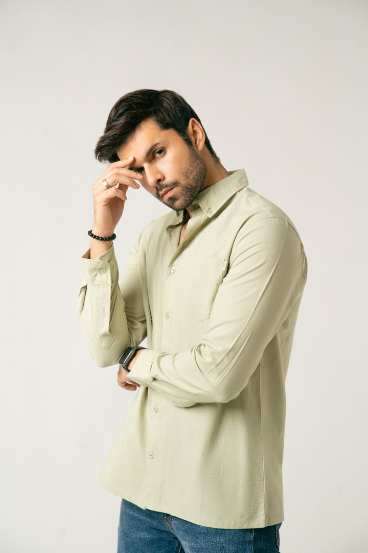 Discover the perfect foundation for your casual and smart-casual looks with this essential Men's Solid Button-Down Shirt. Crafted from a soft, breathable woven fabric (likely cotton or cotton blend), this shirt features an understated and versatile Sage Green hue that adds a touch of earthy sophistication to any wardrobe.