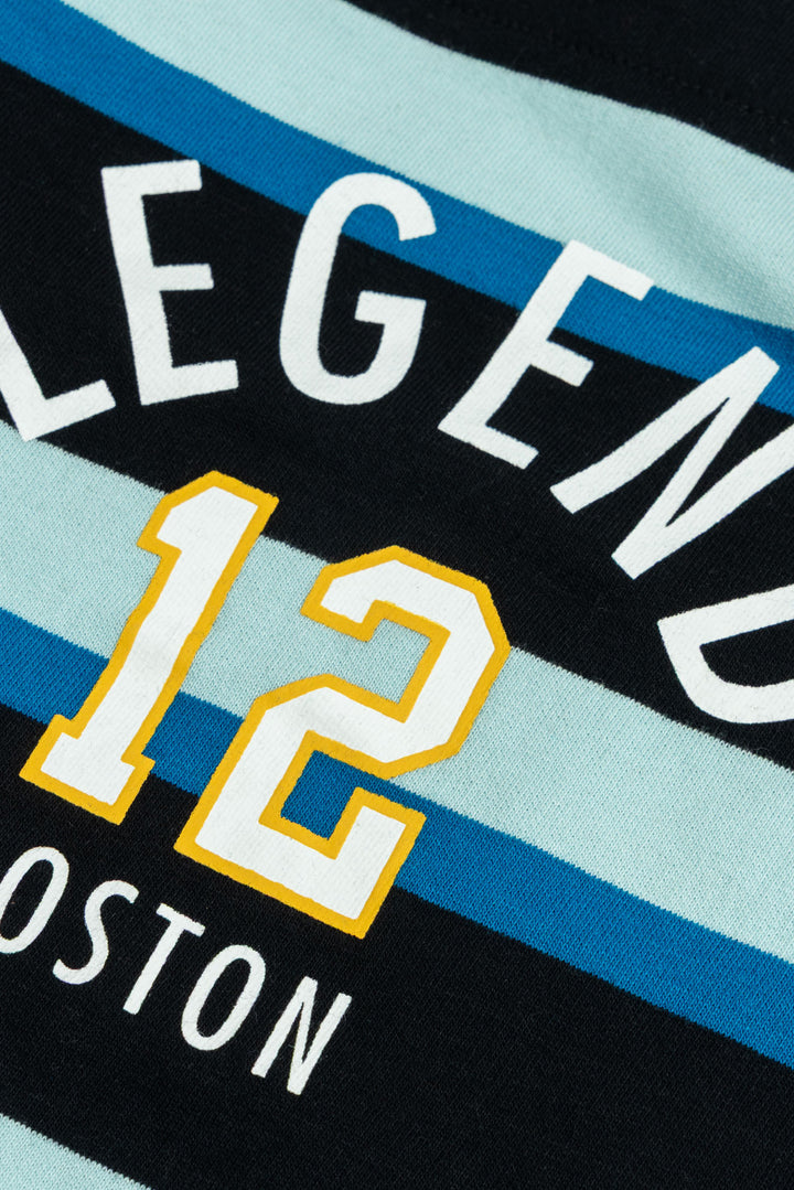 The bold, horizontal stripe pattern in black, royal blue, and mint green creates a vibrant, athletic look that's easy to pair with his favorite jeans or joggers. Featuring a comfortable crewneck...