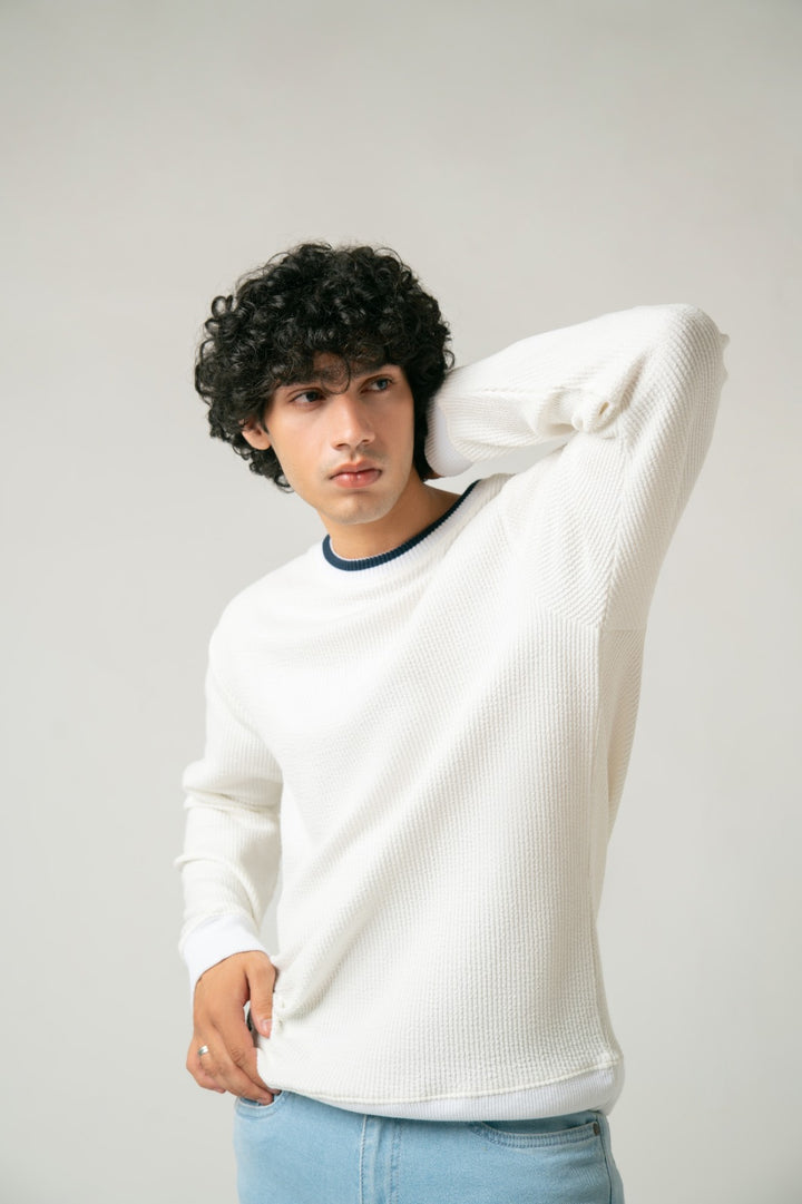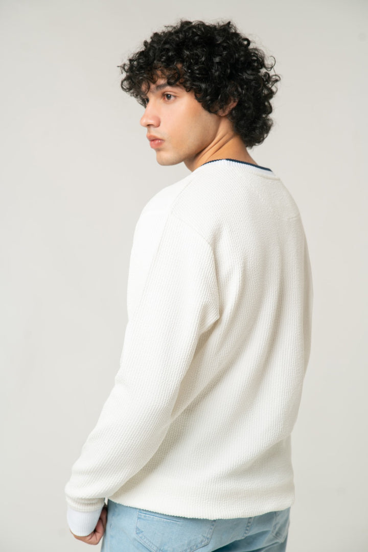 - Fabric: Jacquard Knit (Features a woven-in texture, giving it a honeycomb/thermal appearance).