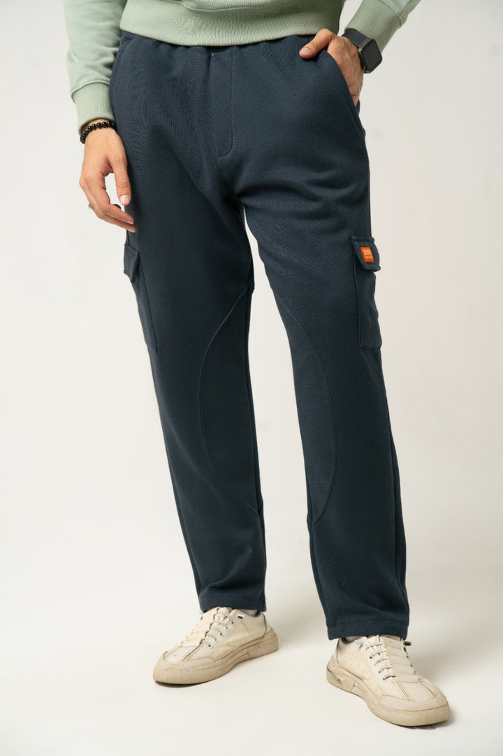 Combining the comfort of joggers with the utility of cargos, these Deep Navy Fleece Trousers are essential for modern casual wear. Made from a soft, warm fleece fabric, they feature an adjustable waist and a practical side cargo pocket with a bold orange "Brave" logo tag. Perfect for superior comfort without sacrificing street-ready style.