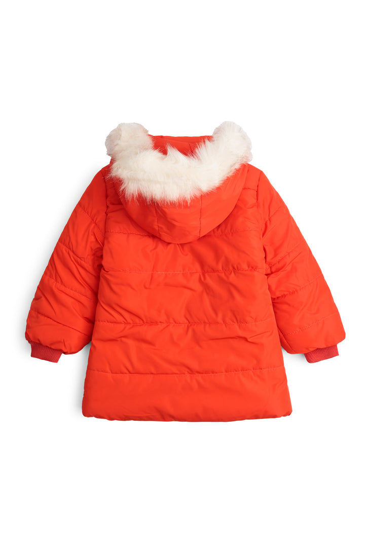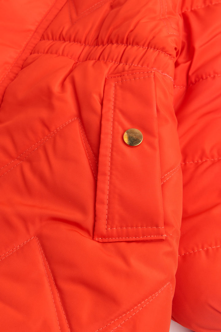Bundle up in style with this adorable and warm Girls' Puffer Jacket. Featuring a stylish chevron quilting pattern and an insulated construction, this jacket is designed for maximum cold-weather comfort. It includes a cozy hood trimmed with soft faux fur, ribbed cuffs to seal in heat, and a cinched waistline that provides a flattering fit. The bright, fun color options and gold-toned snaps make this jacket a winter essential.