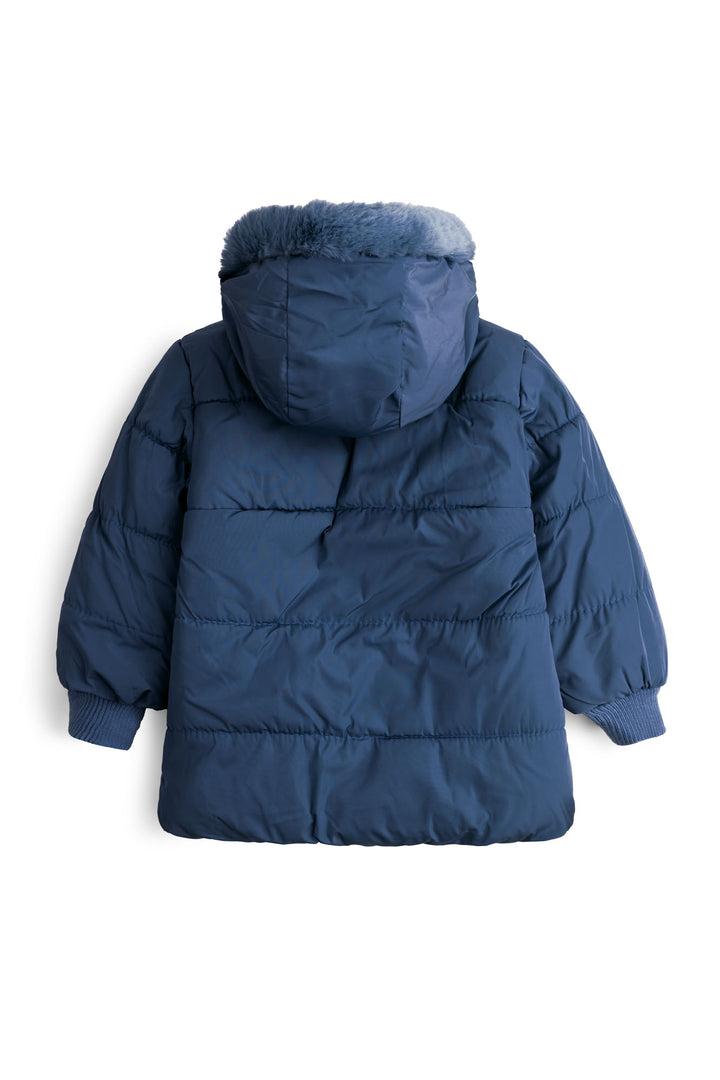 The Cozy Navy-Quilted Faux Fur Puffer Jacket