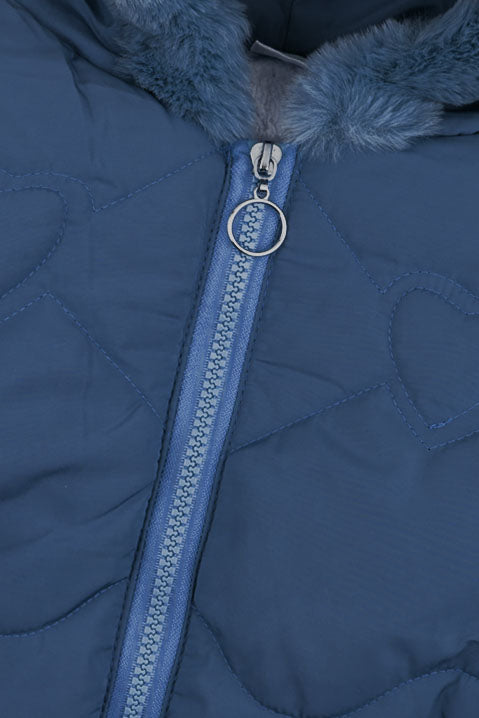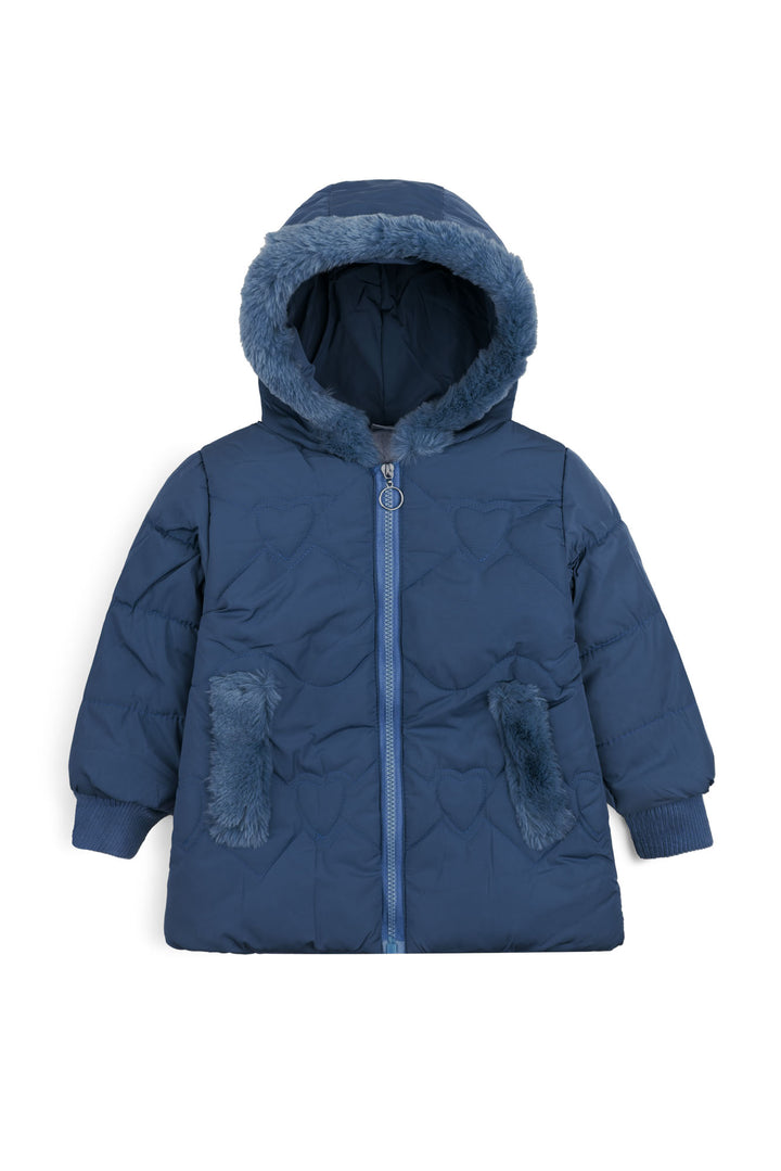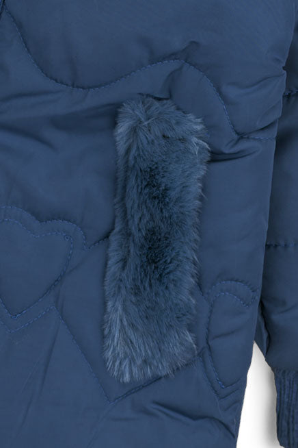 This sweet and cozy Girls' Puffer Jacket is a must-have for chilly weather. It features a unique all-over heart quilting pattern that adds a fun, charming texture. The jacket is designed for superior warmth with an insulated interior, a plush faux fur-trimmed hood, and matching faux fur accents on the pockets. The full-zip closure and ribbed cuffs ensure heat stays in while your little one plays.