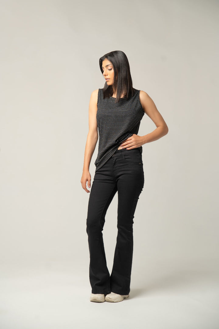 An essential base layer, this Black Stripe Tank Top offers timeless style and comfort. It's crafted from a soft, breathable knit fabric and features a subtle horizontal pin-stripe pattern and a...