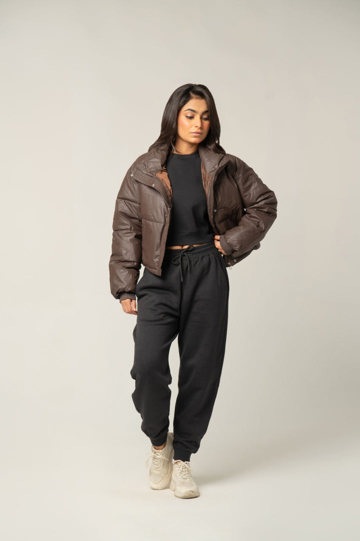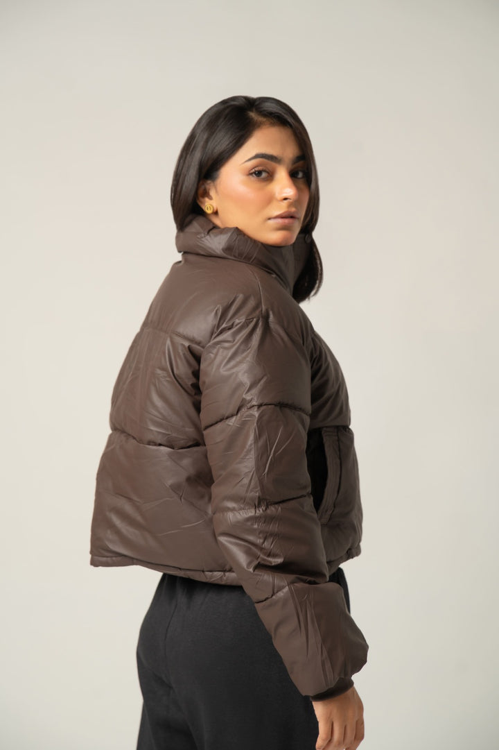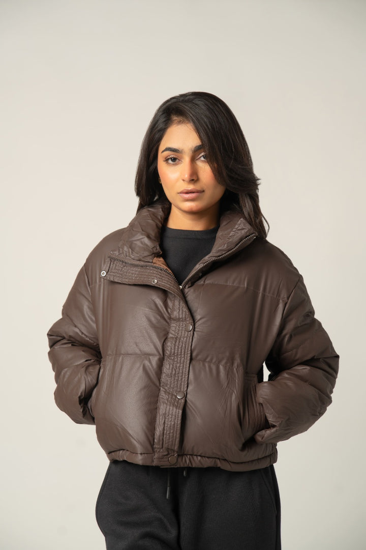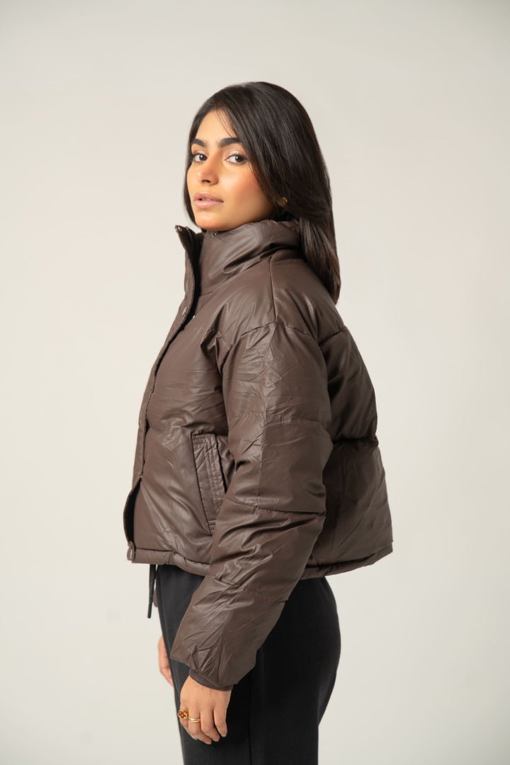Stay warm in style with this cropped, boxy Puffer Jacket in a rich, sophisticated red-bordeaux color. Designed for comfort and warmth, this jacket features a high stand collar, a full-length button placket over a hidden zipper, and functional side pockets with stylish zip closures. The relaxed fit and insulated quilting make it a chic and practical piece for the season.